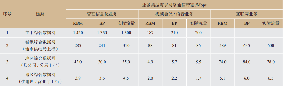 表1 通信網(wǎng)絡(luò)帶寬需求預(yù)測結(jié)果Tab.1 The prediction results of electric power communication network requirement
