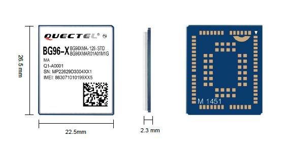 同時支持NB-IoT和eMTC模式,上行下行速率小于375Kbps,尺寸為22.5X26.5X2.3 mm。
