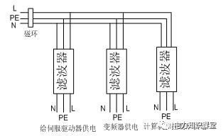 3)重要部件如數(shù)控系統(tǒng)的交流電源應(yīng)采用低通濾波器,減少工頻電源上的高頻干擾信號。如果 有條件的話,數(shù)控系統(tǒng)內(nèi)部的伺服電動機驅(qū)動器、變頻器、計算機及控制電路的電源可分別 用 3 個濾波器,這樣不僅能抑制外部電源干擾,還能抑制各部分之間的相互干擾。但務(wù)必注 意的是以上的第 2 點,濾波器輸出和輸入線必須分清楚,否則濾波器可能會沒有用。