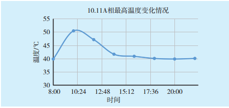 圖4 10月11日A相海底電纜最高溫度隨時間變化曲線Fig.4 The maximum temperature curve of phase A of the submarine cable with time on Oct. 11