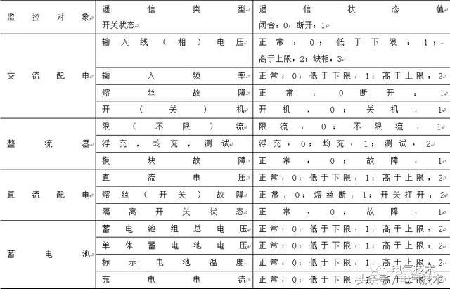 此外,通過RPU的本地存儲功能,還可將采集的數(shù)據(jù)以歷史記錄的形式保存至本地以供查詢。通信電源監(jiān)控模塊監(jiān)控的內(nèi)容見表1,遙信數(shù)據(jù)見表2。