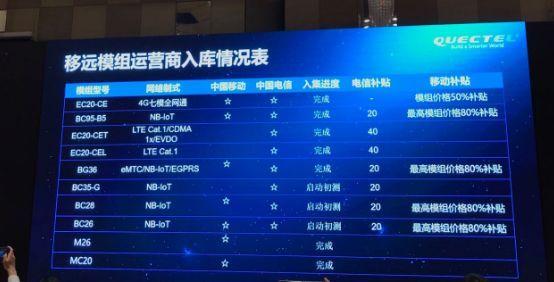 圖:移遠(yuǎn)模組運營商入庫情況表