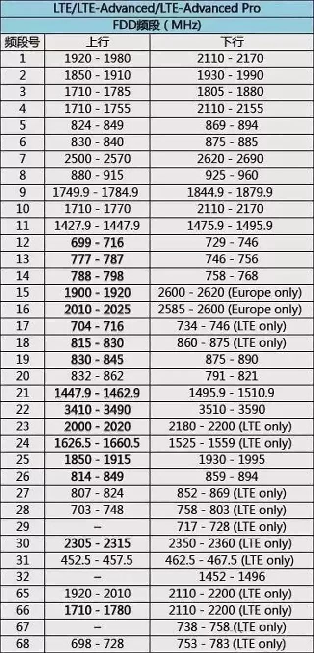 • 3)根據(jù)最近《工信部同意關(guān)于中國聯(lián)通調(diào)整部分頻率用于LTE組網(wǎng)的批復(fù)》,中國聯(lián)通可以在原2G和WCDMA頻段909-915/954-960,1735-1750/1830-1845,1940-1965/2130-2155上重耕LTE FDD。