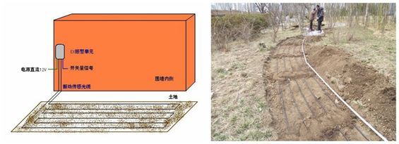 泄漏電纜主要是在敷設的兩個泄漏電纜之間形成了一個看不見的柱形電磁場防護區(qū)域,當人體和金屬體在這個區(qū)域移動時,就引起了電磁場擾動而被探測器檢測到,產(chǎn)生報警信號。對于非金屬體或非人體,比如樹枝等,由于對電磁場的干擾極弱,雖然在該防護區(qū)域移動,卻不能引起電磁場的擾動,因此不會報警。通過對探測器靈敏度的調整,可以將小動物,如小狗、小貓等在防護區(qū)域移動的干擾濾掉,達到有效防護的目的。