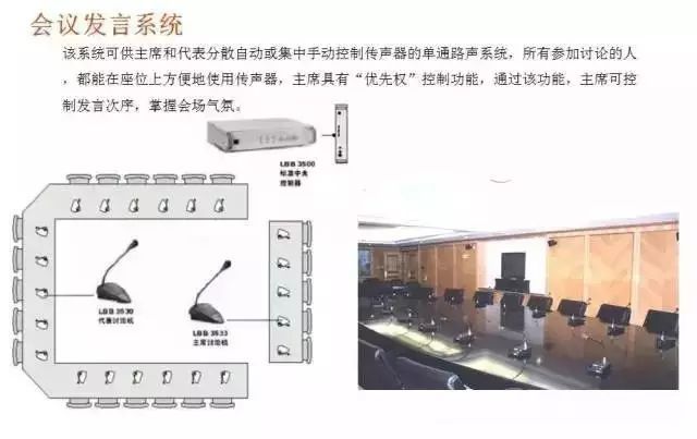該系統(tǒng)可供主席和代表分散自動或集中手動控制傳聲器的單通路聲系統(tǒng),所有參加討論的人,都能在座位上方便地使用傳聲器,主席具有“優(yōu)先權”控制功能,通過該功能,主席可控制發(fā)言次序,掌握會場氣氛。
