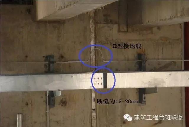 4、直線段金屬電纜橋架長(zhǎng)度超過(guò)30m,玻璃鋼制電纜橋架長(zhǎng)度超過(guò)15m時(shí)應(yīng)設(shè)有伸縮節(jié),電纜橋接跨越建筑物變形縫處應(yīng)斷開(斷縫15-20mm),同時(shí)跨接地線做成Ω型。