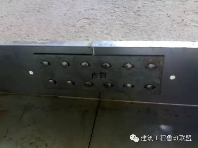 7、立柱與墊板焊接時(shí),要對(duì)立柱的內(nèi)外兩側(cè)施焊,焊縫均勻飽滿。焊接時(shí)一般外側(cè)滿焊,內(nèi)側(cè)分段焊接,槽鋼拐角處,兩側(cè)各留10mm不焊接。