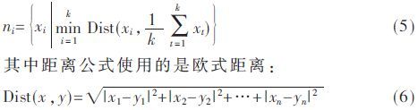 類簇中心點(diǎn)的計(jì)算方法如下:假設(shè)有一個(gè)類簇ci包含m個(gè)數(shù)據(jù)點(diǎn){x1,x2,…,xm},則其中心點(diǎn)ni按如式(5)計(jì)算: