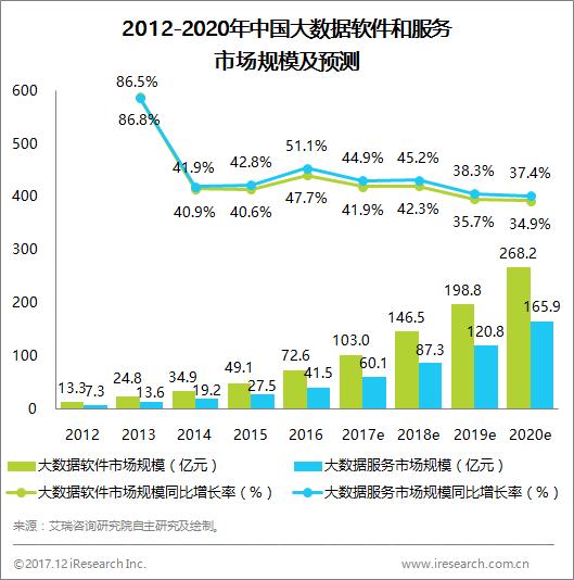 自2012年以來,中國大數(shù)據(jù)軟件和服務(wù)行業(yè)市場(chǎng)規(guī)模增長(zhǎng)迅猛。2016年,大數(shù)據(jù)軟件市場(chǎng)規(guī)模72.6億元,同比增長(zhǎng)47.7%;大數(shù)據(jù)服務(wù)市場(chǎng)規(guī)模41.5億元,同比增長(zhǎng)51.1%。軟件市場(chǎng)占比高于服務(wù)市場(chǎng)的原因是用戶更習(xí)慣于軟件許可授權(quán)的付費(fèi)模式。企業(yè)逐漸認(rèn)同數(shù)據(jù)作為無形資產(chǎn)存在的價(jià)值,并意識(shí)到大數(shù)據(jù)對(duì)企業(yè)發(fā)展的重要性。以BAT為代表的互聯(lián)網(wǎng)公司通過不斷的挖掘沉淀大數(shù)據(jù),利用大數(shù)據(jù)驅(qū)動(dòng)自身業(yè)務(wù)的增長(zhǎng)。信息化建設(shè)相對(duì)完善的金融和電信行業(yè)同樣是大數(shù)據(jù)領(lǐng)域的先行者。面對(duì)互聯(lián)網(wǎng)金融的沖擊,金融機(jī)構(gòu)積極采用大數(shù)據(jù)分析來進(jìn)行客戶管理、營銷管理、風(fēng)險(xiǎn)管理以及內(nèi)部的運(yùn)營優(yōu)化;移動(dòng)流量的激增對(duì)電信運(yùn)營商實(shí)時(shí)的數(shù)據(jù)處理能力、網(wǎng)絡(luò)優(yōu)化能力等提出更高要求,其大數(shù)據(jù)應(yīng)用主要集中在流量運(yùn)營、精準(zhǔn)營銷等領(lǐng)域。此外,政府和傳統(tǒng)制造業(yè)也在積極加強(qiáng)大數(shù)據(jù)建設(shè),與各行各業(yè)的結(jié)合讓大數(shù)據(jù)的應(yīng)用場(chǎng)景越來越豐富,推動(dòng)了大數(shù)據(jù)產(chǎn)業(yè)規(guī)模的增長(zhǎng)。