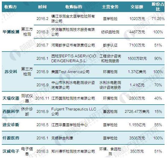圖表3:2016年中國第三方檢測行業(yè)并購事件匯總