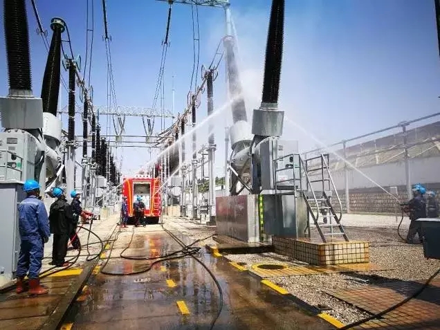 輸變電設(shè)施是電網(wǎng)輸送電能的關(guān)鍵裝備,絕緣子又是輸變電設(shè)施中的最基礎(chǔ)的部件,絕緣子出現(xiàn)臟污是發(fā)生閃絡(luò)事故的根源。為做好十九大保供電工作,南方電網(wǎng)云南公司對(duì)變電站設(shè)備進(jìn)行了帶電水沖洗——采用高壓水泵將凈化后的高阻值純凈水噴到設(shè)備表面,通過(guò)水柱的擊打和水流的渦漩將設(shè)備表面污穢溶解帶走,以達(dá)到降低設(shè)備表面鹽密值的效果。與目前采用的停電清掃、帶電氣吹清掃、帶電機(jī)械清掃等清掃措施相比,帶電水沖洗具有處理突發(fā)能力強(qiáng)、不要求停電作業(yè)、對(duì)生產(chǎn)運(yùn)行影響小、成本低等多方面的優(yōu)勢(shì)。
