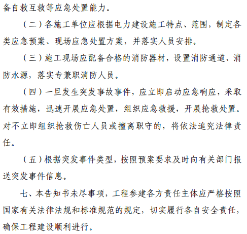 近日,新疆能監(jiān)局印發(fā)關(guān)于《新疆自治區(qū)電力建設(shè)工程安全管理備案實(shí)施細(xì)則》的通知,本細(xì)則適用于新疆境內(nèi)新建、擴(kuò)建、改建、拆除等電力建設(shè)工程的備案工作。本細(xì)則所稱電力建設(shè)工程,包括火電、水電、風(fēng)電、太陽能發(fā)電等發(fā)電建設(shè)工程,輸電、配電等電網(wǎng)建設(shè)工程及其他電力設(shè)施建設(shè)工程。5萬千瓦以下水電、分布式發(fā)電、企業(yè)自備機(jī)組及供熱供汽、余熱余壓發(fā)電、垃圾焚燒發(fā)電等按照國(guó)家相關(guān)規(guī)定另行執(zhí)行。