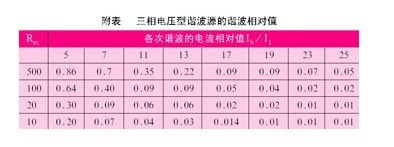 中間直流環(huán)節(jié)用大電容平波,只能穩(wěn)定直流電壓,此大電容對變動(dòng)的輸入?yún)s是低阻抗,因而輸入電流有很大的諧波成分,iec標(biāo)準(zhǔn)對此諧波分量已有數(shù)據(jù)列成表格如附表所示。
