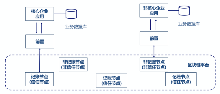 • 聯(lián)盟鏈,為特定業(yè)務(wù)由相關(guān)核心企業(yè)建立,采用多中心(每個(gè)核心企業(yè)為一個(gè)中心)的方式,其他上下游企業(yè)加入