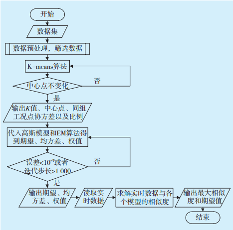在得到高斯混合模型的數(shù)學(xué)求解結(jié)果后,計(jì)算機(jī)基于EM算法不斷求解和迭代可以得到GMM各個(gè)模型的參數(shù)μ和Σ。在現(xiàn)場得到的實(shí)時(shí)數(shù)據(jù)將與GMM中的模型期望值進(jìn)行相似度比較,相似度最高的期望值將作為實(shí)時(shí)數(shù)據(jù)的期望值。