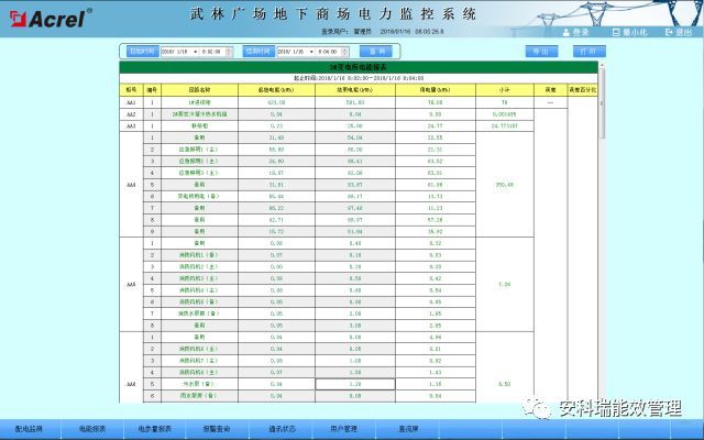為了實現(xiàn)對本商城內(nèi)各回路用電量的監(jiān)管,系統(tǒng)設計了用電管理報表,系統(tǒng)通過對有功電度的采集,按照回路名稱的不同,自動生成日報表、月報表和年報表并有報表打印功能,并可對某一回路的某一時間段內(nèi)的用電量進行查詢,可以幫助物業(yè)建立有效的用能管理考核制度。通過系統(tǒng)的建設和制度的建立,使各入駐商鋪管理人員節(jié)能意識大大提高,有效的節(jié)約了商城管理辦公能源消耗。