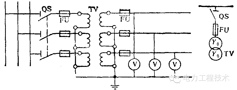 由三個單相互感器一、二次側均接成Y形,可供給要求線電壓的儀表和繼電器以及要求相電壓的絕緣監(jiān)視電壓表。