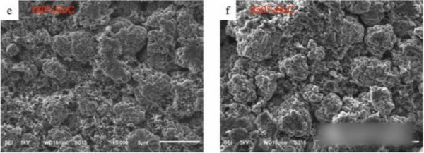 這一點(diǎn)也可以也可以從SEM圖片(下圖)中得到佐證,從下圖可以看到,雖然經(jīng)歷了過(guò)充的考驗(yàn),但是NMC532材料的顆粒形狀仍然清晰可辨,二次顆粒的形貌沒(méi)有發(fā)生顯著的改變。