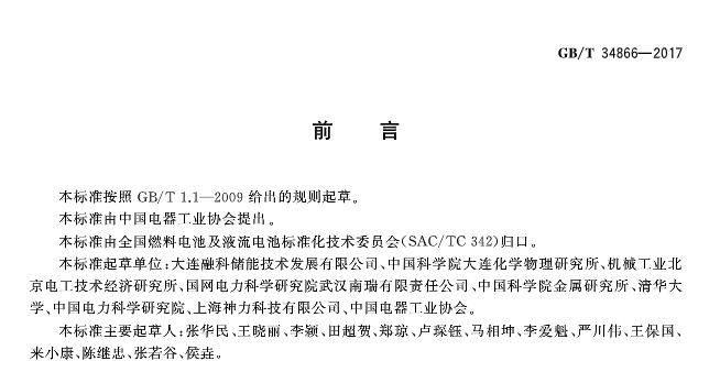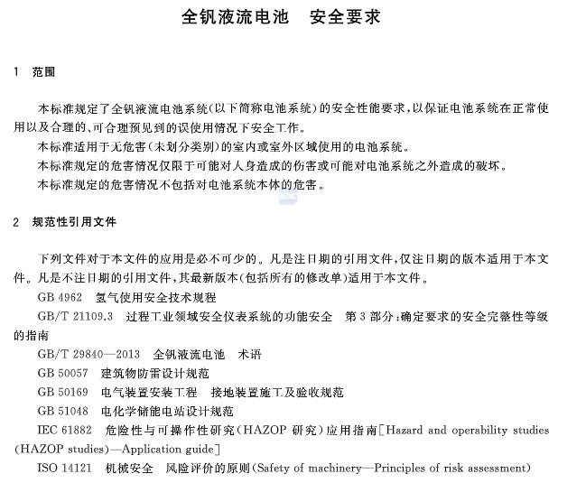 國(guó)家標(biāo)準(zhǔn)《全釩液流電池 安全要求》發(fā)布 2018年5月實(shí)施
