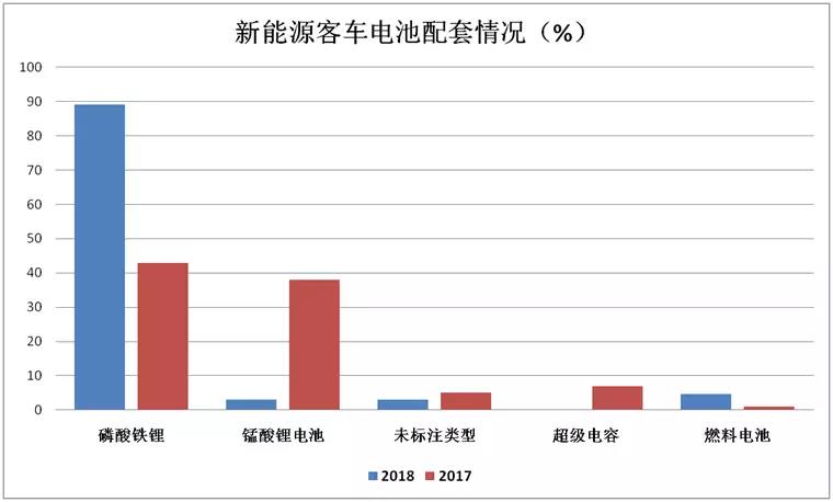數(shù)據(jù)顯示,去年占比40%的錳酸鋰電池在新能源客車上大幅減少。在2018年首批公示的數(shù)據(jù)結(jié)果中,顯然,磷酸鐵鋰電池成為了新能源客車的主要選擇。相比乘用車而言,新能源客車空間大,能搭載更多的電池。所以對(duì)于電池能量密度的要求不高,而更加重視安全性。所以廠商采用成熟的磷酸鐵鋰電池作為主流選擇也是合情合理。