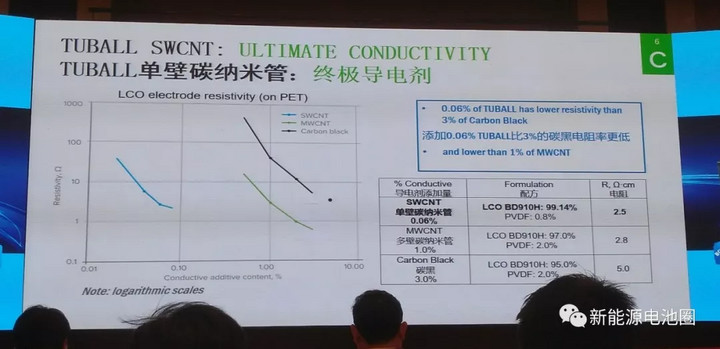 第三個要報告來自O(shè)CSiAl 公司的SWCNT在鋰電中的應(yīng)用
