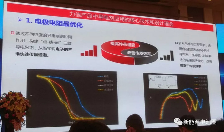 同樣的觀點是利用不同種類導(dǎo)電劑的協(xié)同作用,構(gòu)建點線面三維導(dǎo)電網(wǎng)絡(luò),提高離子,電子傳輸速率。下圖是對比數(shù)據(jù)。
