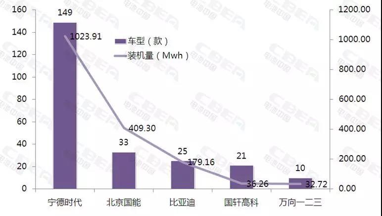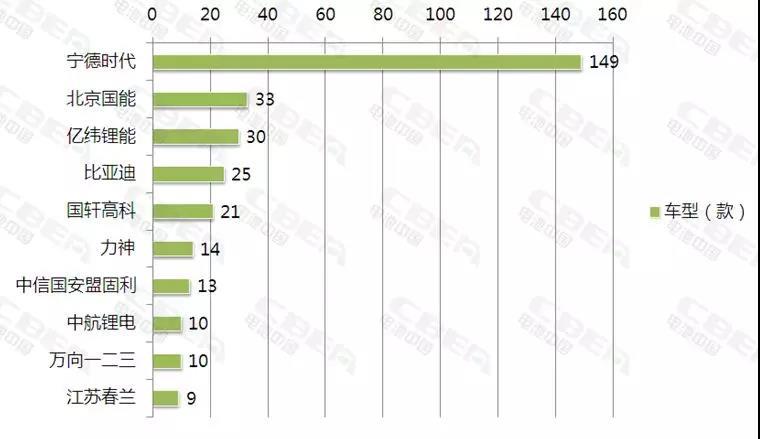 裝機(jī)量代表動(dòng)力電池企業(yè)在當(dāng)前市場(chǎng)的占有量,若要看未來動(dòng)力電池企業(yè)發(fā)展如何?就要看動(dòng)力電池企業(yè)配套車型獲批情況,未來哪家動(dòng)力電池企業(yè)配套車型越多,未來將有機(jī)會(huì)獲得更多的市場(chǎng)占有量。下面來看2018年新能源汽車推薦目錄1-3批車型配套電池企業(yè)前10名。寧德時(shí)代以149款配套車型遙遙領(lǐng)先;位居第2位的是國(guó)能,配套車型量為33款;億緯鋰能緊隨其后,配套車型量為30款;從第4名開始,配套車型均低于30款并逐漸下滑,趨勢(shì)平緩。