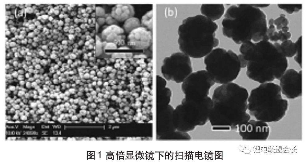 1碳負極材料:此種類型的材料無論是能量密度、循環(huán)能力,還是成本投入等方面,其都處于表現(xiàn)均衡的負極材料,同時也是促進鋰離子電池誕生的主要材料,碳材料可以被劃分為兩大類別,即石墨化碳材料以及硬碳。其中,前者主要包括人造石墨以及天然石墨。人造石墨的形成過程為:在2500℃以上的溫度中,將軟碳材料進行石墨化處理之后得到,MCMB屬于人造石墨中比較常用的一種,其結(jié)構為球形,表面質(zhì)地較為光滑,直徑大約為5-40μm。由于受其表面光滑程度影響,使電極表面以及電解液之間發(fā)生反應的幾率降低,進而降低了不可逆容量。同時,球形結(jié)構能夠方便鋰離子在任何方向進行嵌入和脫出活動,對保障結(jié)構穩(wěn)定具有較大的促進作用。天然石墨也具有諸多優(yōu)勢,其結(jié)晶度較高、可嵌入的位置較多,并且價格較低,是較為理想的鋰離子電池材料。但其也存在一定的弊端,例如在與電解液反應時,相容性較差,在進行粉碎時表面存在諸多缺陷等,這都將對其充電或放電的性能產(chǎn)生較大的不利影響。此外,硬碳的形成過程為:在2500℃的狀態(tài)下,難以實施石墨化的碳材料,其主要為高分子化合物的熱解碳,通過高倍顯微鏡能夠看出,其是由許多納米小球堆積而成,整體呈現(xiàn)出花團簇狀,具體如圖1所示。在其表面具有大量納米孔的無定形區(qū)域,在容量方面遠遠超過石墨的標準容量,進而對循環(huán)能力產(chǎn)生較大的不利影響。
