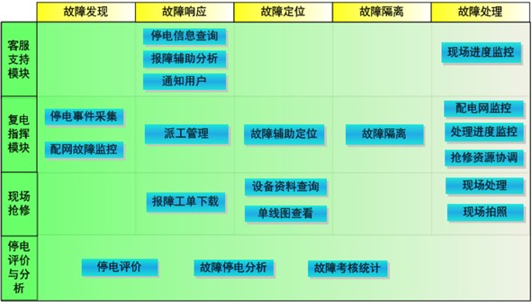 為進(jìn)一步擴(kuò)大對(duì)停電管理業(yè)務(wù)的覆蓋面,為停電事件處理的各個(gè)環(huán)節(jié)提供更加有力的信息支持,加快建立公司的快速?gòu)?fù)電反應(yīng)機(jī)制,使業(yè)務(wù)系統(tǒng)覆蓋停電及復(fù)電工作的全過(guò)程,在現(xiàn)有通信、網(wǎng)絡(luò)、應(yīng)用、信息等基礎(chǔ)上,以電網(wǎng)模型為支撐,以停電事件為主線,建立信息集成化、預(yù)警模型化、預(yù)案數(shù)字化、決策智能化、處置可視化的快速?gòu)?fù)電技術(shù)支持平臺(tái),為停電事件快速響應(yīng)、復(fù)電搶修調(diào)度、故障輔助定位、搶修現(xiàn)場(chǎng)支持、資源統(tǒng)一調(diào)配、客戶服務(wù)支持等提供有力的信息支持,有效減少客戶停電時(shí)間、提高客戶滿意度