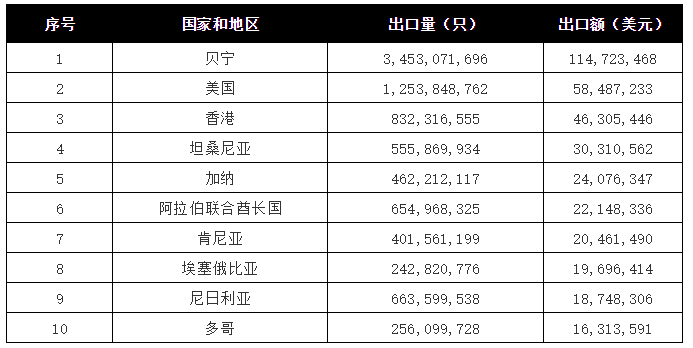 2、2017堿錳電池出口前十大目的地(按出口額排序)