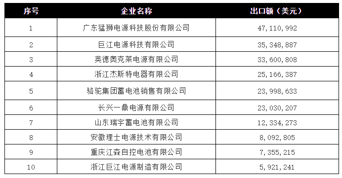 3、2017年鋰離子蓄電池出口前十大企業(yè)