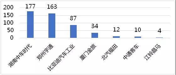 2017年9月份,廣東區(qū)域新能源客車上險量為487輛,其中廣州285輛,占比高達(dá)58.5%。本土品牌比亞迪占比17.8%,宇通、中車時代、金旅、福田、中通客車等占據(jù)了82.2%份額。