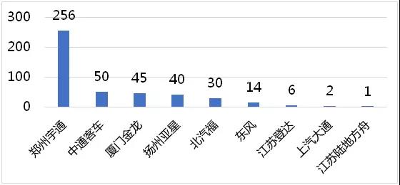 2017年9月份,江蘇區(qū)域新能源客車上險量為444輛,其中宇通客車上險256輛,奪得該區(qū)域冠軍頭銜,占比達(dá)57.7%,江蘇本地新能源客車品牌上險量相對較少。