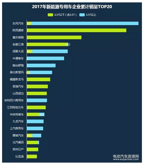 企業(yè)表現(xiàn)來看,2017年1~11月,東風(fēng)汽車銷售新能源專用車數(shù)量最多,達到12536臺,位居榜首;其次是陜西通家,前11月銷售新能源專用車8461臺,位居第二;重慶瑞馳位居第三,前11月銷售新能源專用車4651臺;中通客車排在第四位,前11月銷售新能源專用車3243臺;成都大運前11月銷售新能源專用車3016臺,位列第5名。上述5家企業(yè)前11月新能源專用車銷量之和占總銷量的50.96%。