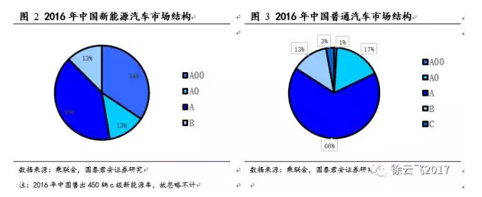 我國新能源汽車市場絕對數(shù)量較大,但從產(chǎn)品結(jié)構(gòu)看低端產(chǎn)品占比較高。2016年新能源乘用車主要由A0級與A00級高增長拉動整體增長,雖然銷量世界領(lǐng)先,但大而不強(qiáng),主要車型在品牌知名度、核心性能、科技體驗(yàn)等方面皆與世界熱門車型有較大差距。一方面由于我國固有國情,經(jīng)濟(jì)型電動車在縣鄉(xiāng)市場發(fā)展?jié)摿薮?;另一方面我國新能源汽車原有補(bǔ)貼政策采取階梯式補(bǔ)貼形式,且17年補(bǔ)貼金額大幅退坡,導(dǎo)致整個(gè)市場16年下半年形成搶裝之勢,廠商使用經(jīng)濟(jì)型電動車能在短時(shí)間內(nèi)研制生產(chǎn)從而搭上補(bǔ)貼退坡前的末班車。補(bǔ)貼政策的發(fā)展直接影響我國新能源汽車行業(yè)的發(fā)展。我國即將實(shí)施的雙積分政策,充分消化了其他國家新能源政策發(fā)展的經(jīng)驗(yàn),將長期利好我國新能源汽車市場。