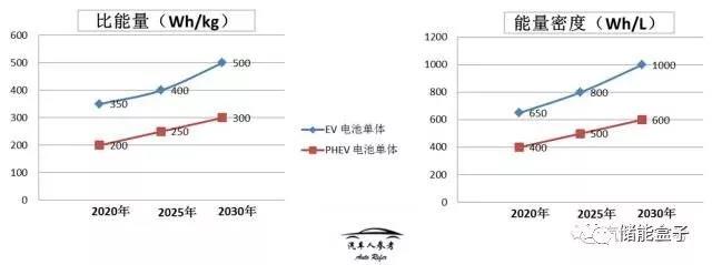 根據(jù)16年發(fā)布的“節(jié)能與新能源汽車技術(shù)路線圖”,我們可以大概對(duì)動(dòng)力電池發(fā)展趨勢(shì)有一個(gè)概念,下圖所示,到2020年,純電動(dòng)汽車電池單體比能量要達(dá)到350Wh/kg