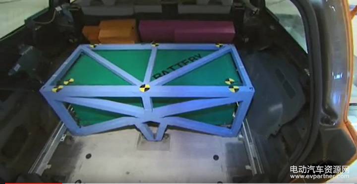 沃爾沃曾經(jīng)做過(guò)一個(gè)整車(chē)后碰實(shí)驗(yàn),電池位于后備箱(下圖):