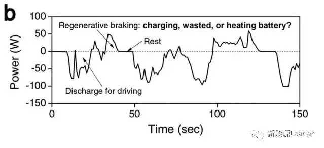 我們知道在電動汽車的使用過程中,除了正常行駛外,還會發(fā)生剎車等情況,電動汽車在剎車等過程中一般都會進行能量回收,在鋰離子電池溫度足夠的時候,這部分能量會直接存儲在鋰離子電池中,但是當(dāng)鋰離子電池溫度過低時,為了防止鋰離子電池在低溫下充電造成負(fù)極表面析鋰,這部分能量通常被浪費掉。Guangsheng Zhang利用自加熱電池快速自加熱的特性,設(shè)計了低溫下的制動能量回收管理程序,在電池溫度較低時,回收能量會首先用于加熱電池,當(dāng)電池溫度加熱到合適溫度后,然后會將回收的能量存儲到電池。
