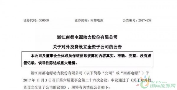 南都電源11月7日發(fā)布公告稱,擬使用自有資金10,000萬元設(shè)立全資子公司安徽南都華鉑新材料科技有限公司(以下簡稱南都華鉑新材料),開展鋰電回收及新材料業(yè)務(wù),打通鋰電產(chǎn)業(yè)鏈。  公告顯示,南都華鉑新材料