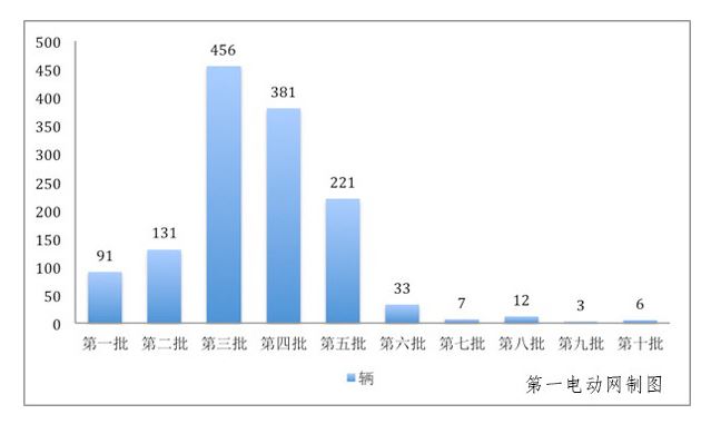 2210款需要整改的新能源汽車產(chǎn)品中,包括597款汽車底盤和1613款新能源汽車產(chǎn)品。第一電動網(wǎng)統(tǒng)計發(fā)現(xiàn),1613款整車產(chǎn)品中有1361款已進入今年發(fā)布的前十批新能源汽車推薦目錄。其中,1299款位列前五批新能源汽車推薦目錄,即2017年7月1日前發(fā)布的目錄。這與企業(yè)回應(yīng)基本一致,整改車型絕大多數(shù)是上半年申報的產(chǎn)品。