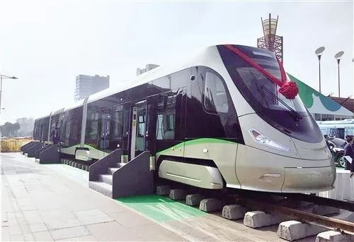 ↑推介會(huì)上展示的中車青島四方的氫燃料電池有軌電車。