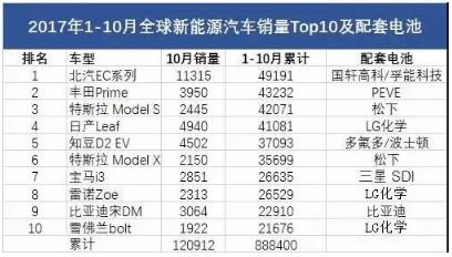 全球銷(xiāo)量Top10的電動(dòng)汽車(chē) 都用了誰(shuí)的電池?