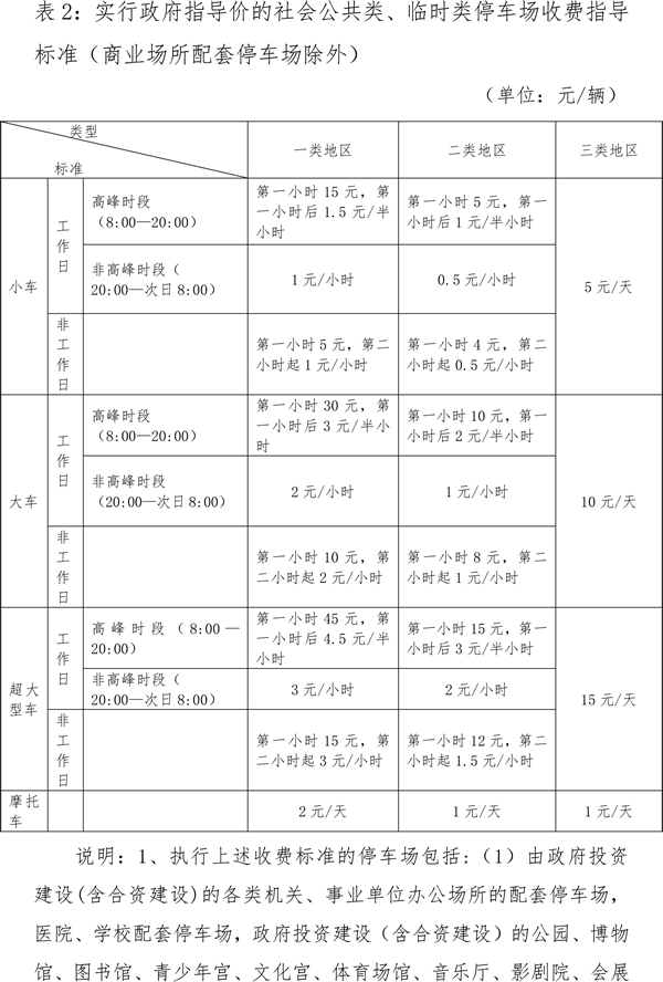 2.實(shí)行政府定價(jià)的社會(huì)公共類停車設(shè)施停車收費(fèi)指導(dǎo)標(biāo)準(zhǔn)