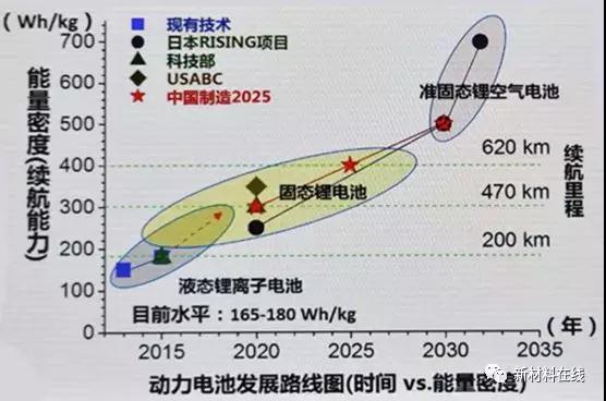 因為傳統(tǒng)的鋰電池技術(shù)(磷酸鐵鋰和三元)受制于液態(tài)電解質(zhì),難以兼容金屬鋰負極和新研發(fā)的高電勢正極材料,從而使能量密度的上升存在瓶頸。在安全方面還會造成短路引燃、離子濃度差增大電池內(nèi)阻、電極材料持續(xù)消耗等問題。而在中國,政府將未來若干年內(nèi)動力電池的技術(shù)目標定在2020~2025年要實現(xiàn)單體能量密度300Wh/kg~400Wh/kg。顯然,不論是磷酸鐵鋰還是三元鋰電,都難堪此大任。