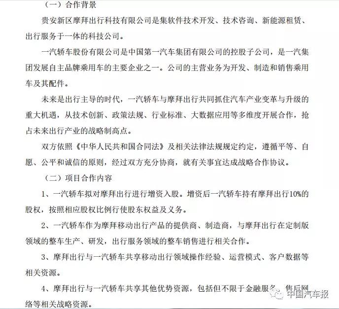 根據(jù)協(xié)議參與增資后,一汽轎車持有摩拜出行10%股權(quán),將與摩拜出行在技術(shù)創(chuàng)新、政策法規(guī)、行業(yè)標(biāo)準(zhǔn)、大數(shù)據(jù)應(yīng)用等多維度開展合作。