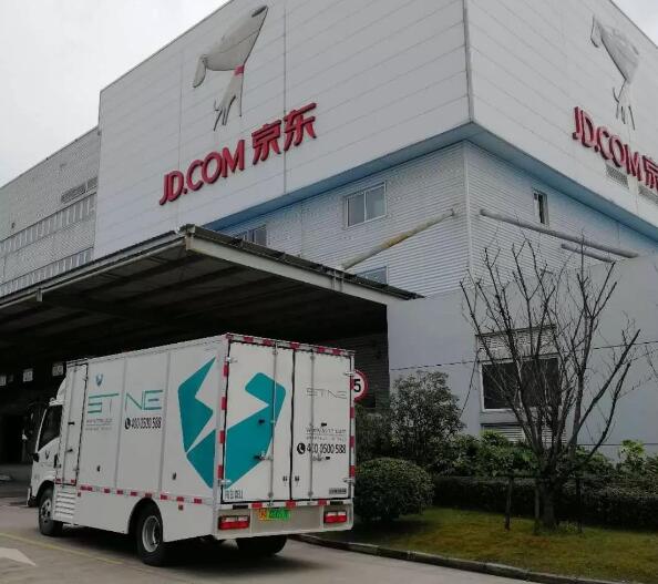 2018年3月5日上午,在京東位于上海最大的物流中心京東亞洲一號基地,上海新瑞生態(tài)卡車科技有限公司將2臺東風(fēng)牌氫燃料電池物流車交付給京東
