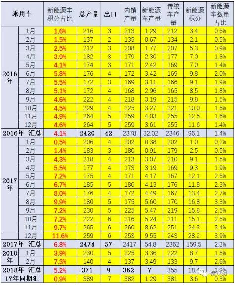 2、18年1-2月新能源乘用車產(chǎn)量占比1.9%