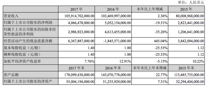 數(shù)據(jù)顯示,公司實(shí)現(xiàn)1059.15億元的收入,同比增長(zhǎng)2.36%。歸屬于上市公司股東的凈利潤(rùn)為40.66億元,同比下降19.51%。導(dǎo)致這一結(jié)果的原因有二:新能源補(bǔ)貼的下降;以及公司燃油汽車的銷量同比下降24.62%。