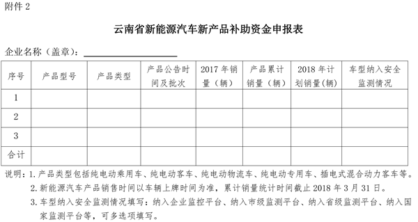 2.云南省新能源汽車新產(chǎn)品補助資金申報表