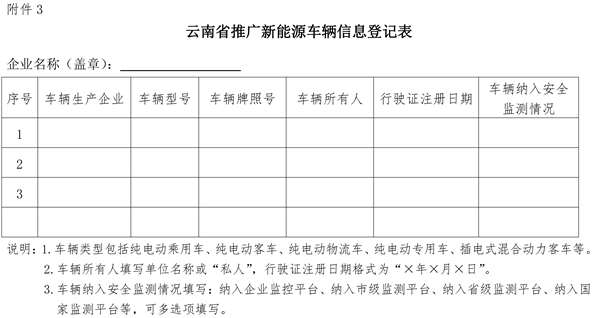 6.《云南省推廣新能源車輛信息登記表》(附件3);